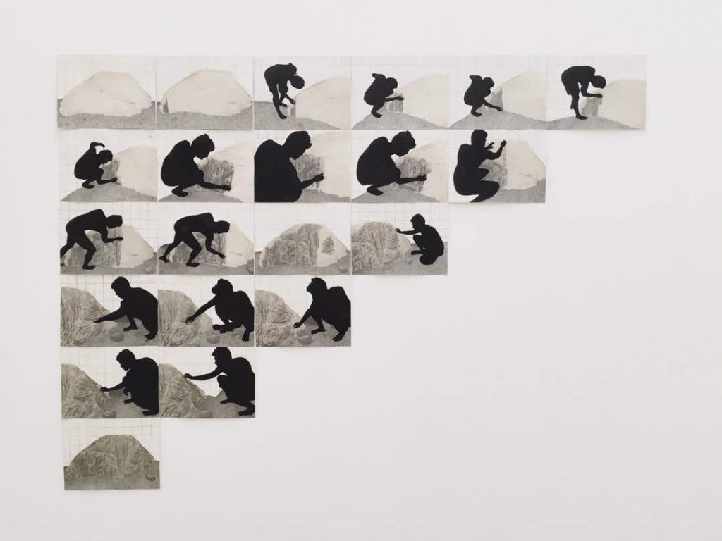 Trabajo diversas técnicas plásticas como el dibujo, la pintura, la escultura, utilizo la impresión gráfica, intervengo fotografías, hago collage y videos. Mi investigación aspira a ser una síntesis visual donde involucro el cuerpo y la memoria en experiencias como mecanismos de conocimiento estético y experimentación plástica del paisaje.